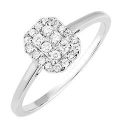 « L'ATELIER » N. 211500Anello Oro bianco 9 carati - Cluster di diamanti naturali Rettangolo equivalente 0.5 - Halo Diamante 4.7 (46)