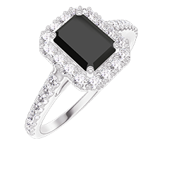 « L'ATELIER » N. 224878Anello Oro bianco 18 carati - Diamante nero Rettangolo 0.5 Carati - Halo Diamante - Incastonatura Diamante 4.8 (49)