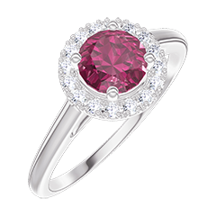 « L'ATELIER » N. 1006354Anello Oro bianco 18 carati - Rubino sintetico Rotonda 0.5 Carati - Halo Diamante di laboratorio 4.7 (18)