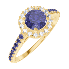 « L'ATELIER » N. 170589Anello Oro giallo 18 carati - Zaffiro blu Rotonda 0.5 Carati - Halo Diamante - Incastonatura Zaffiro blu 4.7 (18)