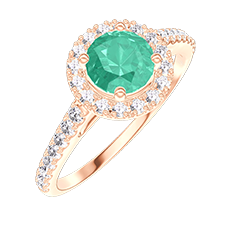 « L'ATELIER » N. 175996Anello Oro rosa 18 carati - Smeraldo Rotonda 0.5 Carati - Halo Diamante - Incastonatura Diamante 4.7 (18)