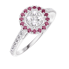 « L'ATELIER » Nº211423Anello Oro bianco 18 carati - Cluster di diamanti naturali Rotonda equivalente 0.5 - Halo Rubino - Incastonatura Diamante 4.7 (18)