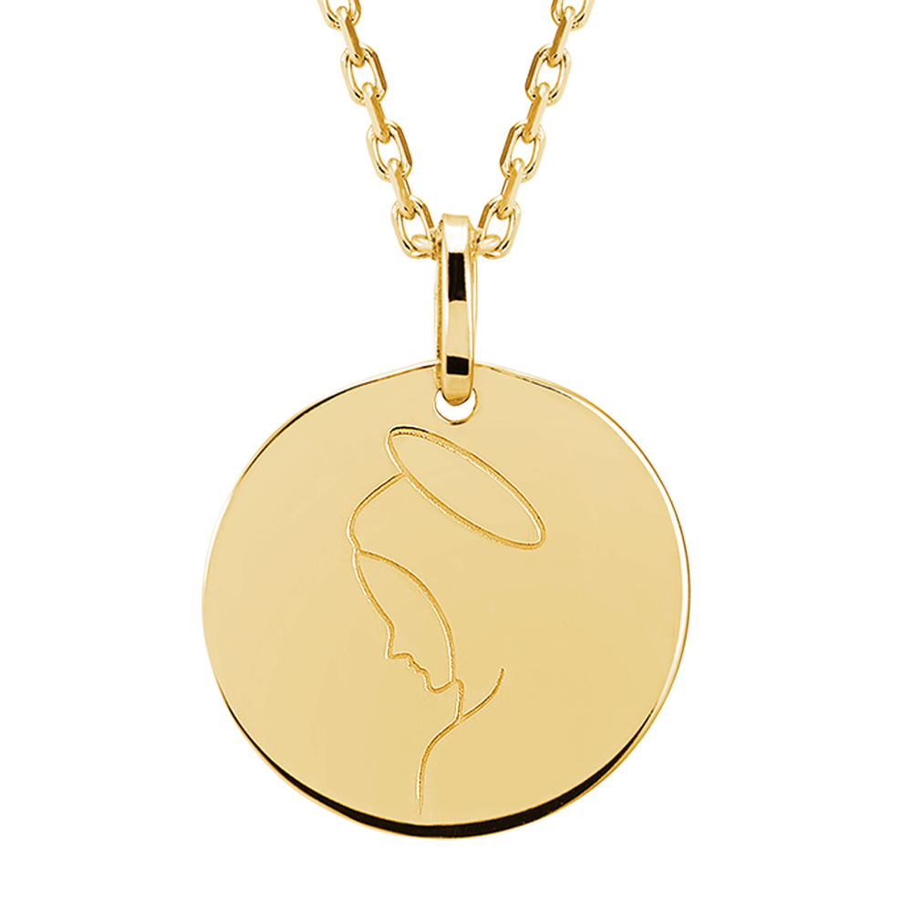 Questa medaglietta della Vergine Maria, delicatamente disegnata da Edenly, è realizzata in oro giallo 9 carati. Le linee pure e la luce intensa riflettono l’essenza della collezione Origine.