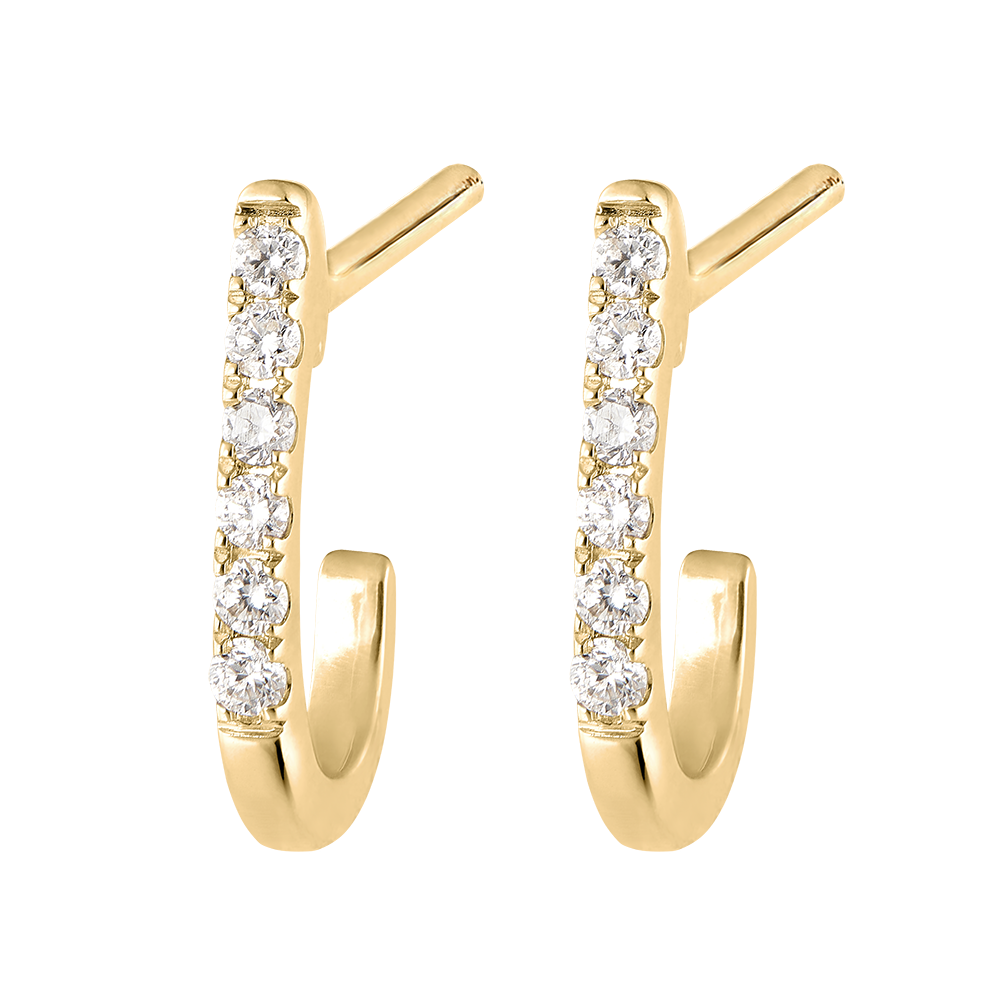 Dei teneri orecchini a semicerchio in oro giallo dal delicato e luminoso pavé di diamanti.