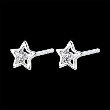 L'iconico motivo a stella in oro bianco impreziosito da un diamante, rivisitato in orecchini discreti e originali.