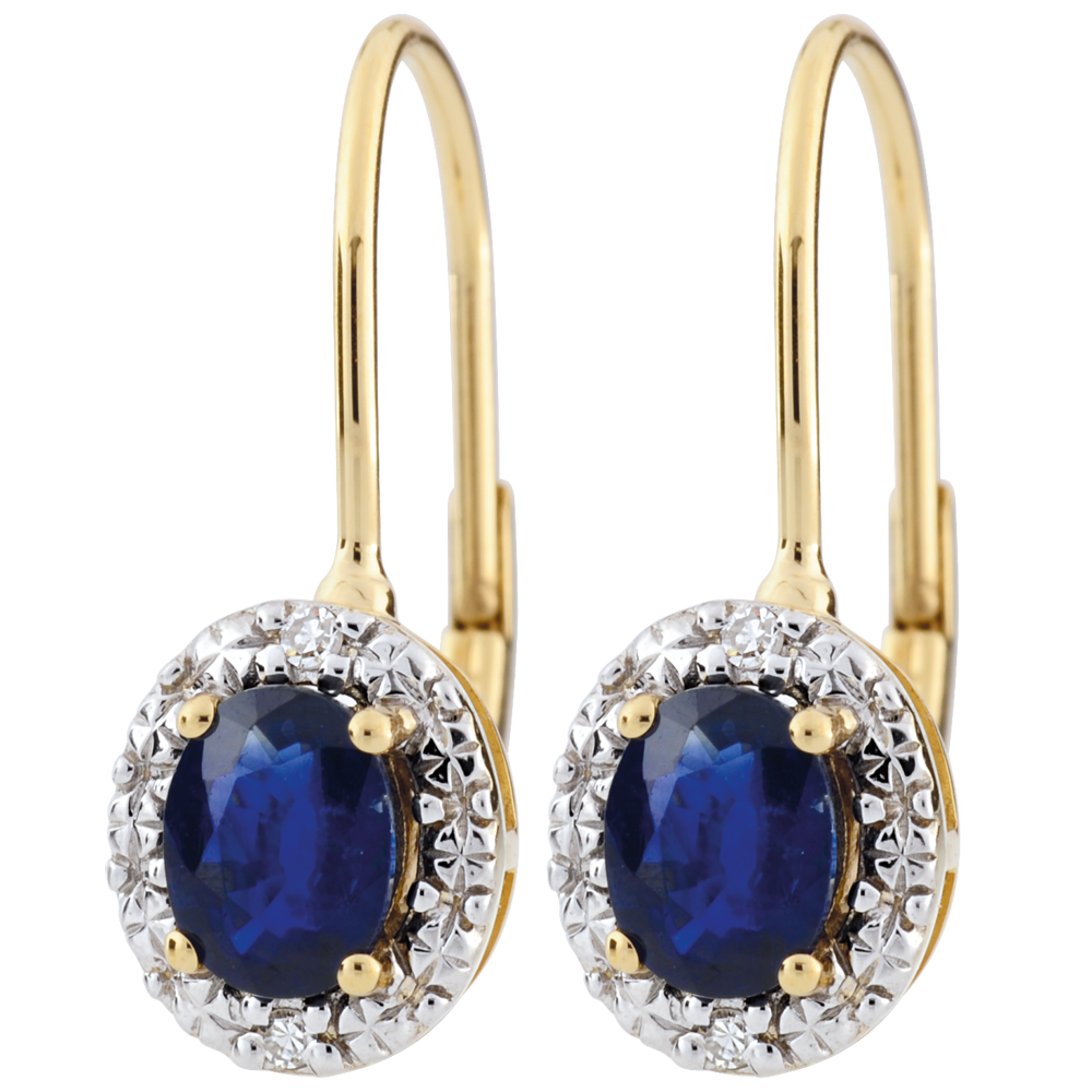 Una coppia di zaffiri contornata dalla brillantezza dei diamanti bianchi per una raffinata coppia di orecchini in Oro giallo.