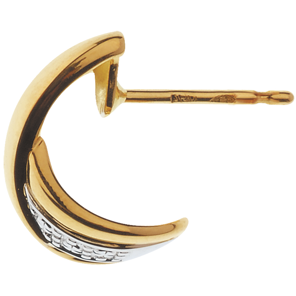 Un motivo in Oro giallo si unisce a un motivo in Oro bianco e diamanti per dare vita a due preziosi, femminili orecchini.