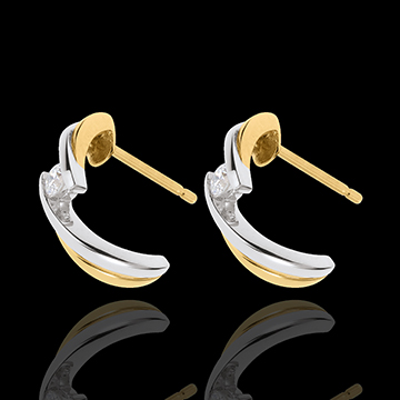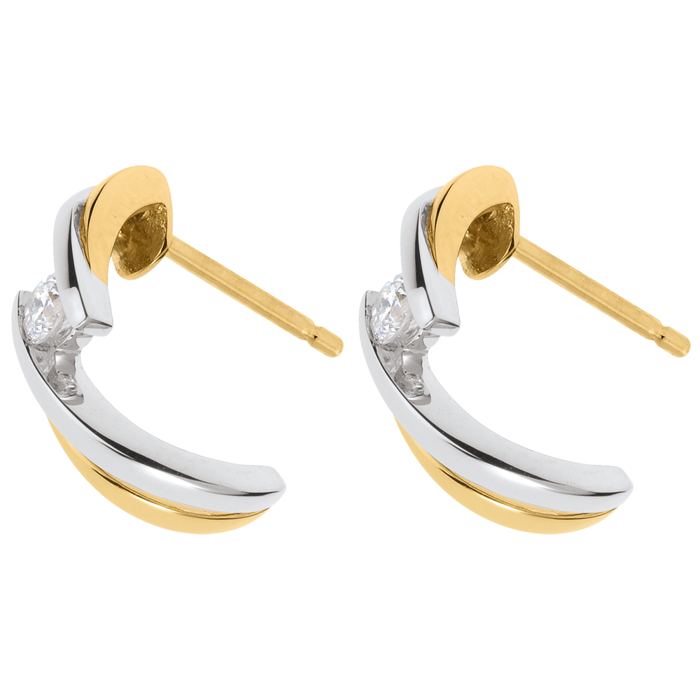 Orecchini Avventura a due - Oro giallo e Oro bianco - 18 carati - 2 Diamanti - 0.16 carati