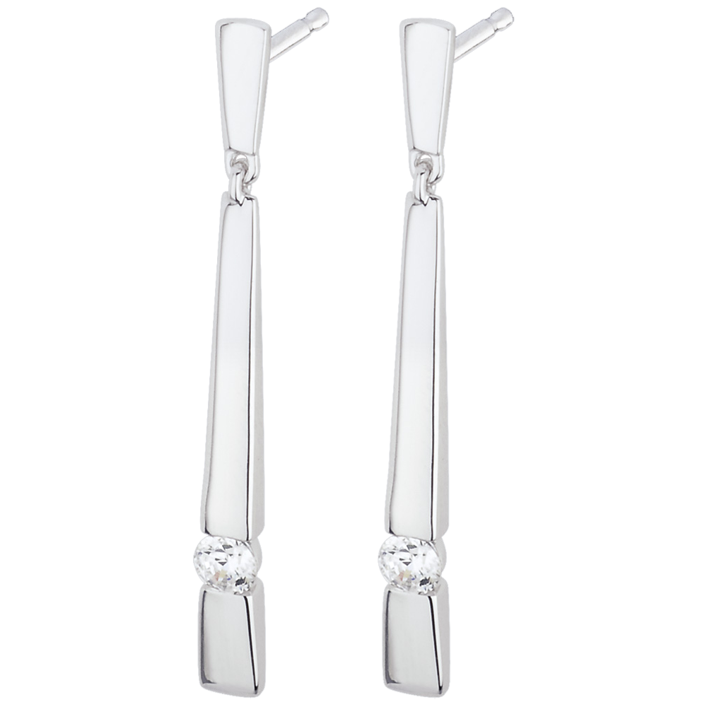 Degli orecchini pendenti in Oro bianco impreziositi da un diamante, eleganti ed essenziali.