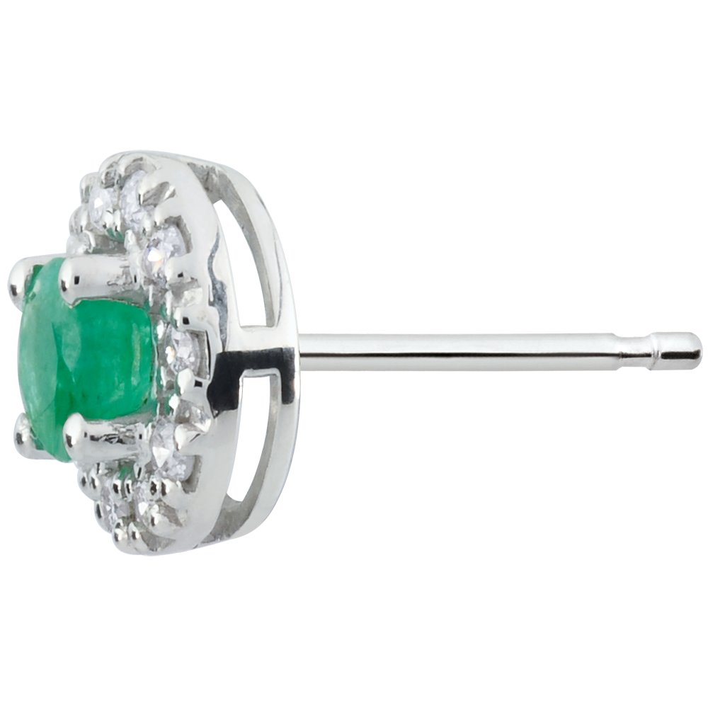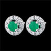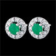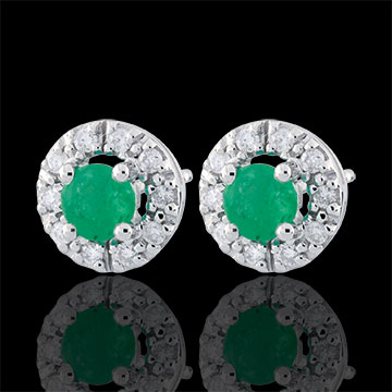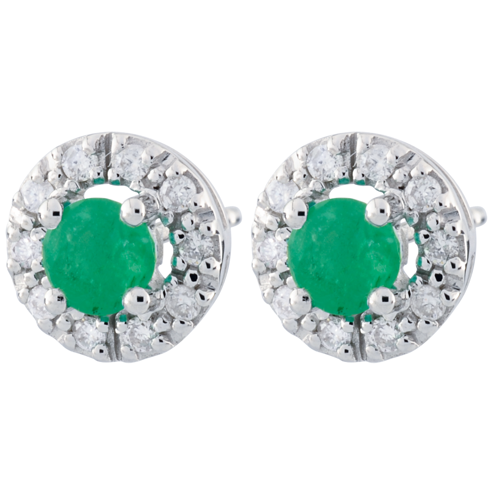 Una coppia di eleganti orecchini rotondi in Oro bianco e diamanti custodisce al centro un prezioso smeraldo.