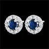 Una coppia di eleganti orecchini rotondi in Oro bianco e diamanti custodisce al centro un prezioso zaffiro.