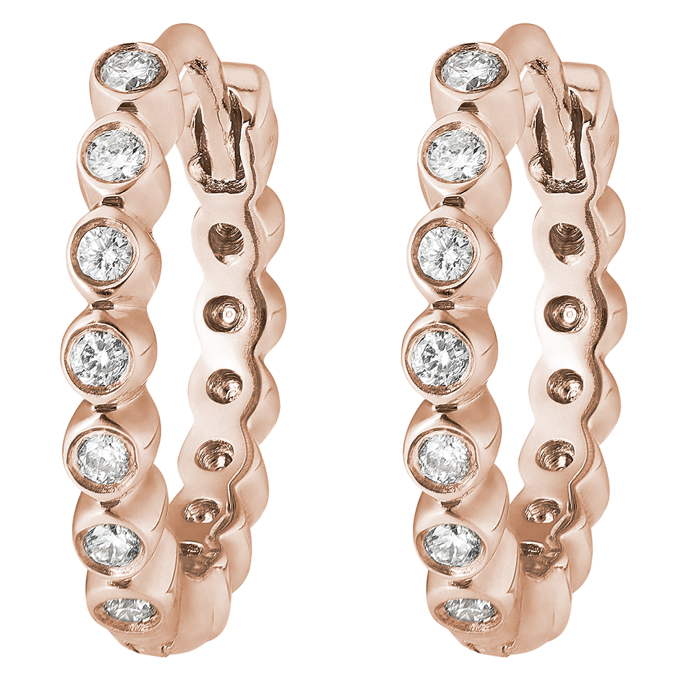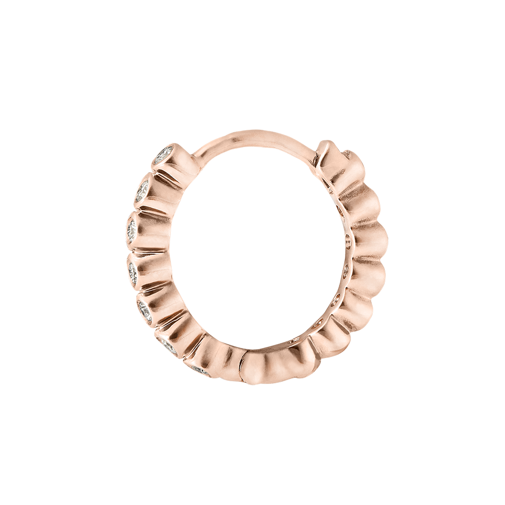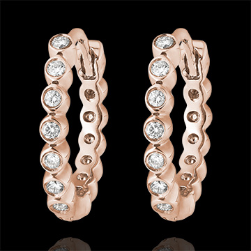 Un cerchio di perle d'oro rosa con diamanti. Un paio di orecchini creoli femminili, allo stesso tempo classici e originali.14 diamanti : 0.07 carati.