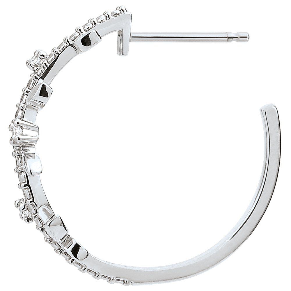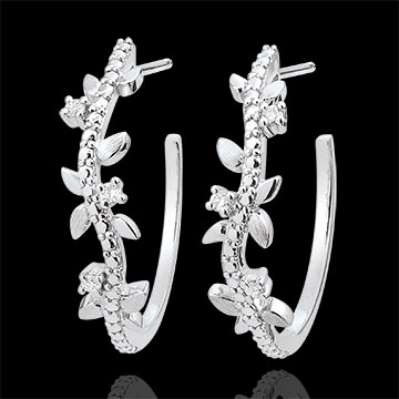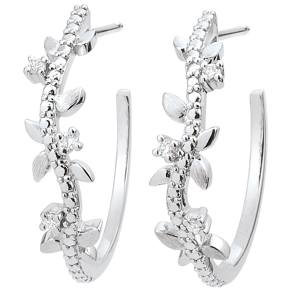 Un'alternanza di foglie in oro bianco brillante e di fogli in oro rifinite a mano per orecchini romantici con 6 diamanti incastonati.