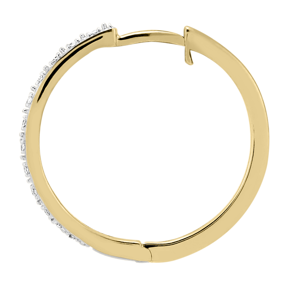 Una coppia di orecchini creoli in oro giallo semi pavé, per un tocco di luce e di modernità. Diametro cerchio 18mm.