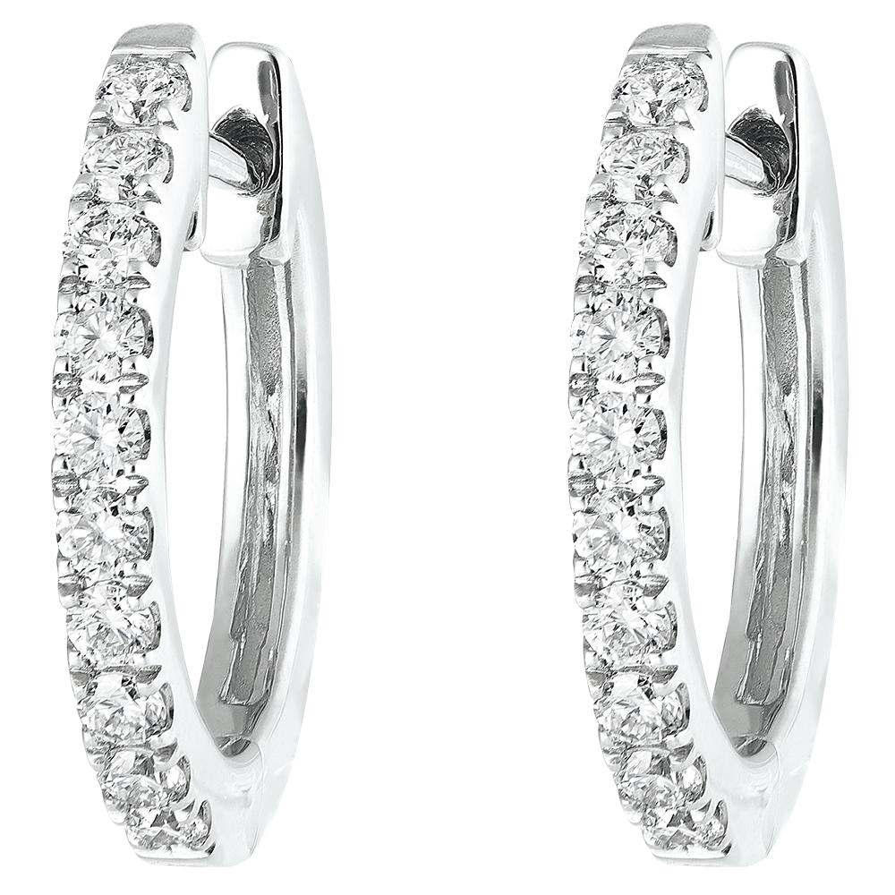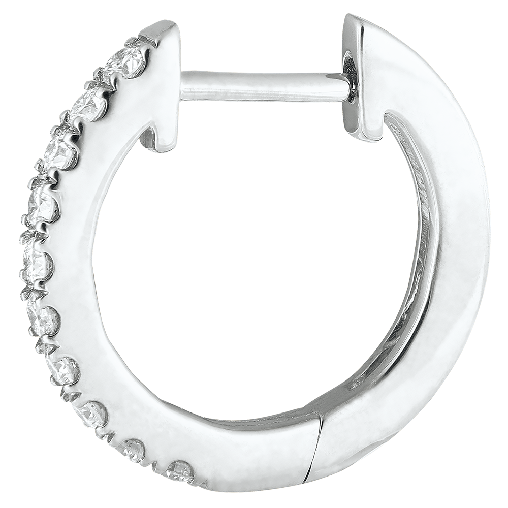 Un delicato paio di orecchini creoli in oro bianco semi- pavé per un pizzico di lucentezza dal tocco rock.