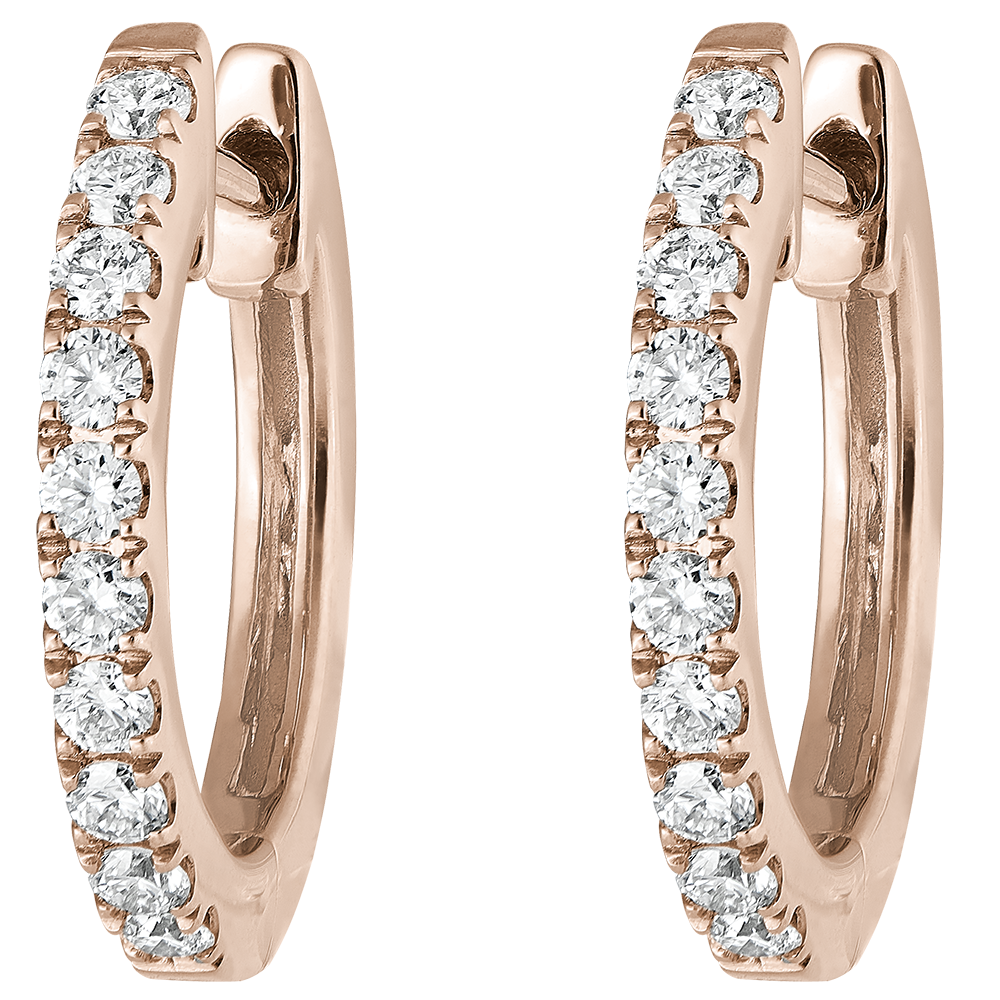 Un delicato paio di orecchini creoli in oro rosa semi- pavé per un pizzico di lucentezza dal tocco rock.