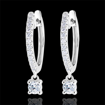 Un paio di orecchini creoli in oro bianco semi-pavé il cui piccolo pendente con diamante aggiunge un tocco prezioso e scintillante.