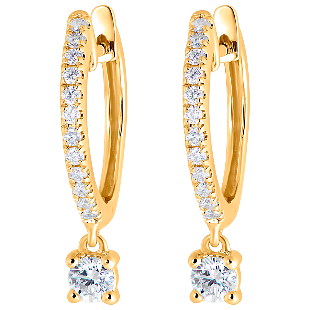 Un paio di orecchini creoli in oro giallo semi-pavé il cui piccolo pendente con diamante aggiunge un tocco prezioso e scintillante.