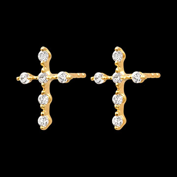 ORIGINE N. 47Orecchini a lobo Croce - Oro giallo 9 carati - Diamante di laboratorio ID : 1585