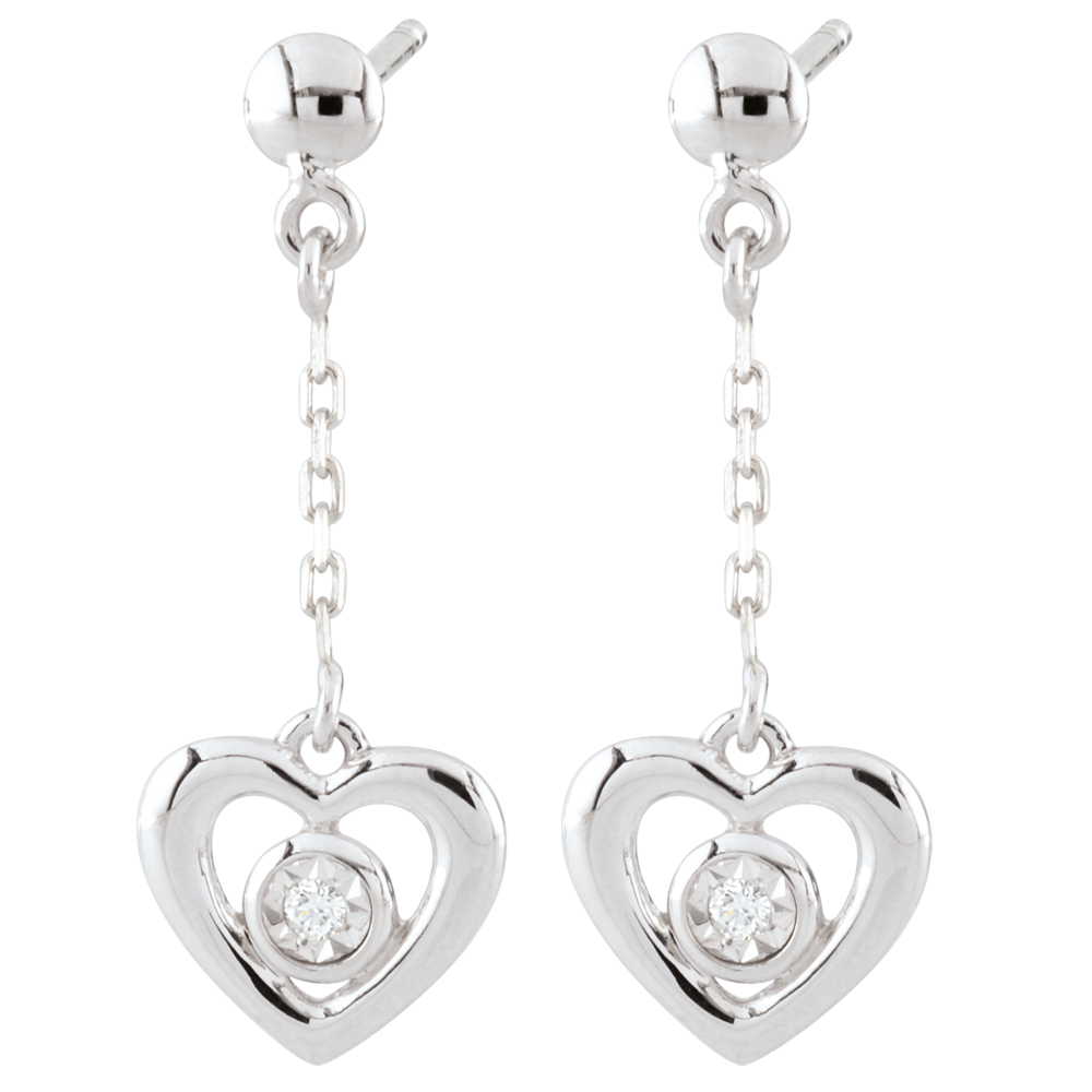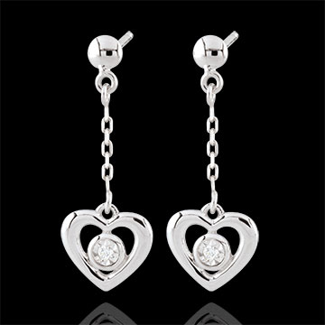 Orecchini Cuori Pendenti - Oro bianco - 18 carati - 2 Diamanti