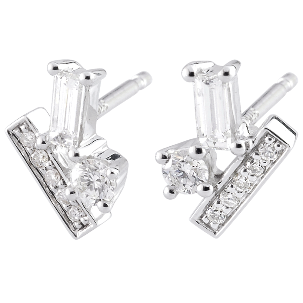 Un diamante rotondo, un pavé di brillanti ed un motivo in Oro bianco si uniscono per formare preziosa brina da indossare. Degli orecchini raffinati per un delicato tocco di luce al volto