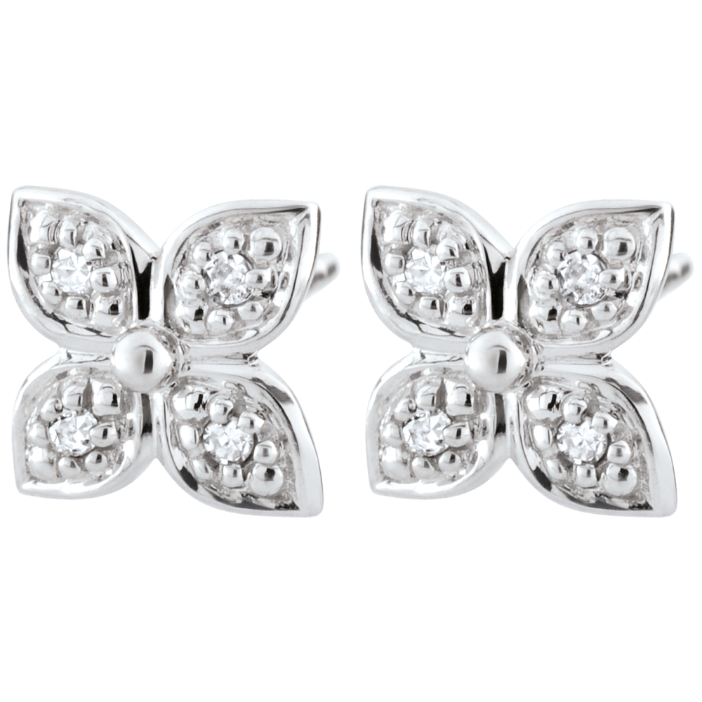 Orecchini Fiore d'eternità - Oro bianco - 9 carati - 8 Diamanti