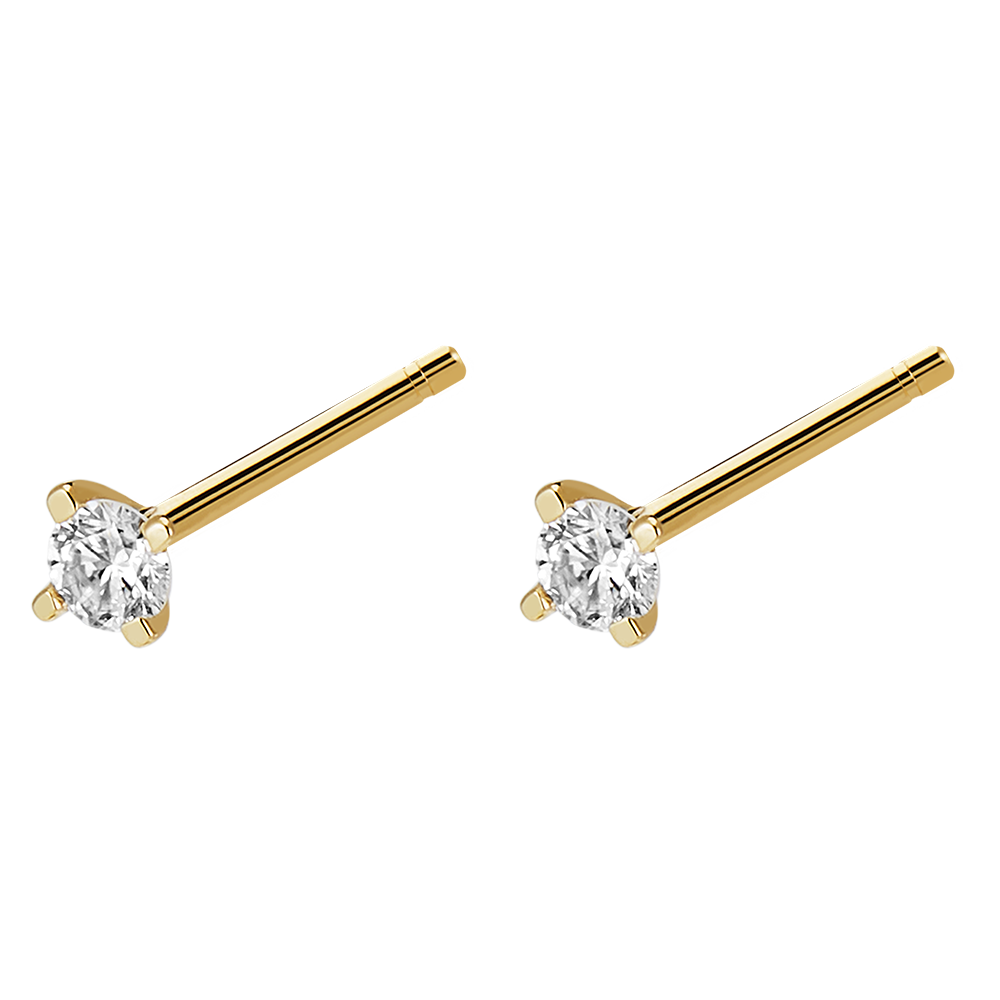 Lo splendore e la freschezza di un paio di piccoli orecchini a bottone in oro giallo con diamanti. Da abbinare a piacere ad altri modelli o da indossare spaiati.