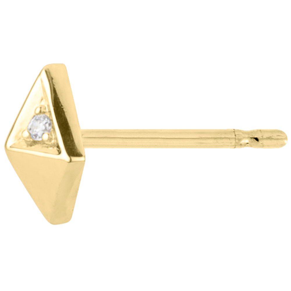 Ispirate alla forma d'un diamante grezzo, queste piramidi preziose con un diamante incastonato in una delle facce sono eleganti e moderne.