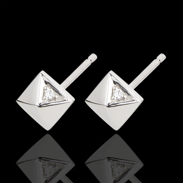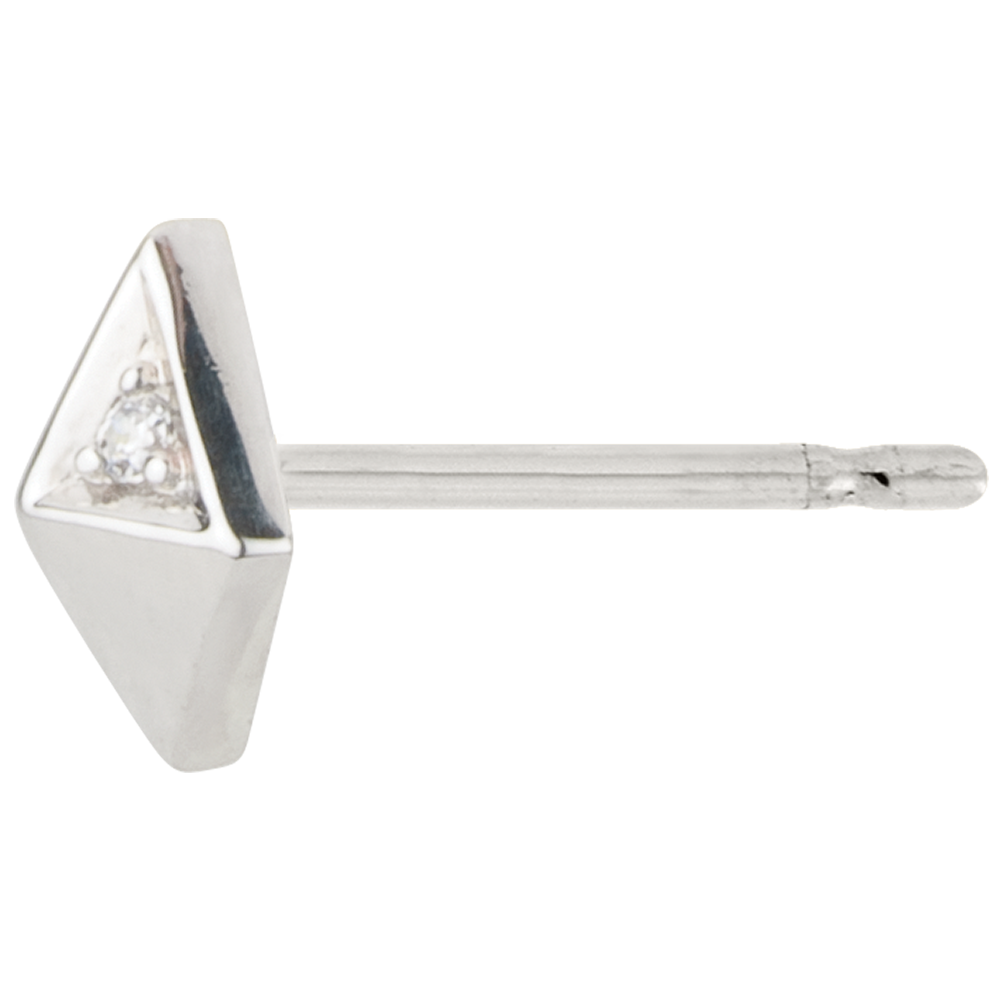 Ispirate alla forma di un diamante grezzo, queste piramidi preziose con un diamante incastonato in una delle facce sono eleganti e moderne.