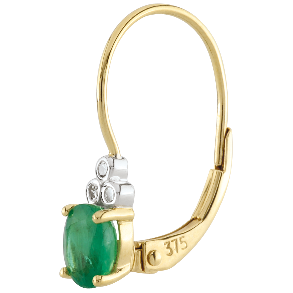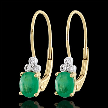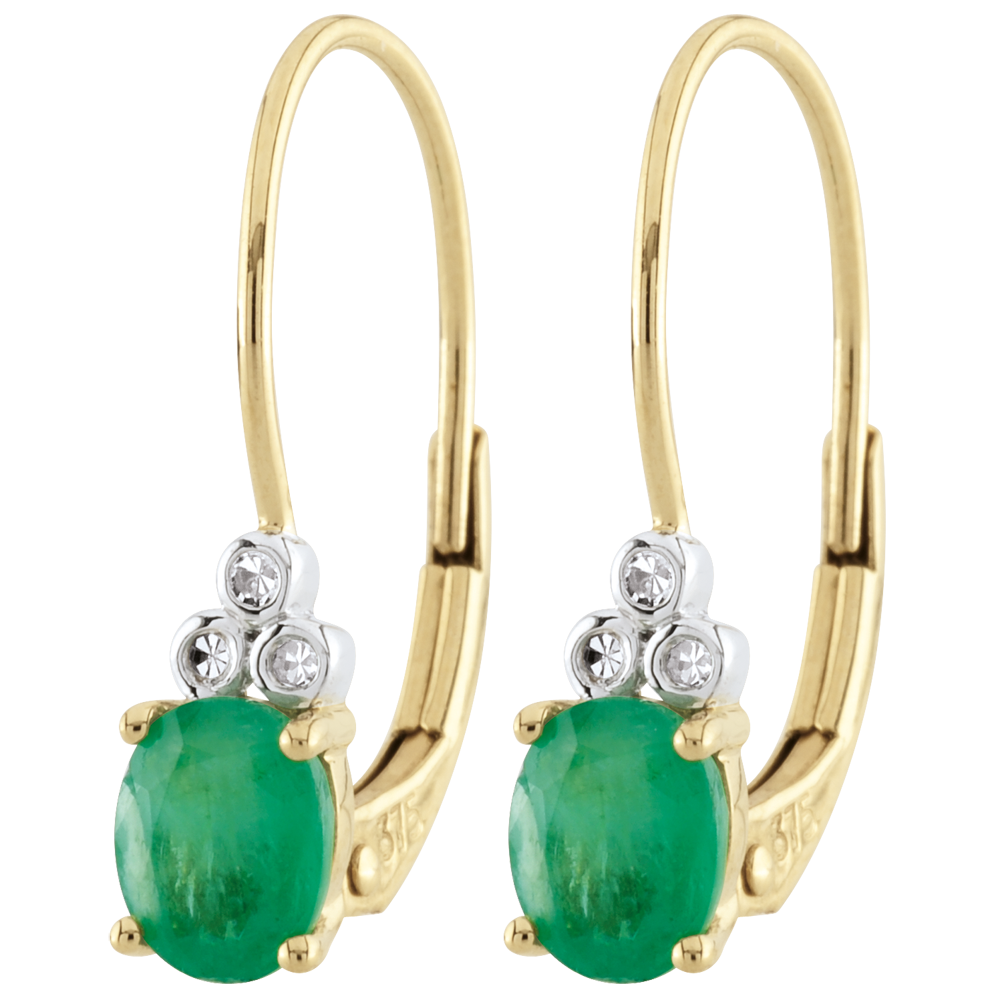 Orecchini Exquises - Oro giallo - 9 carati - 6 Diamanti - 2 Smeraldi