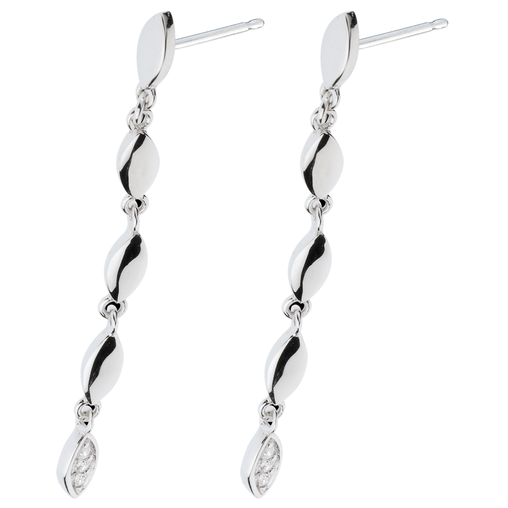 Come liane preziose, questi orecchini pendenti in Oro bianco illuminano dolcemente il viso.