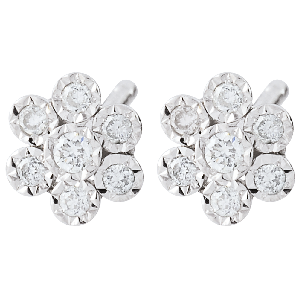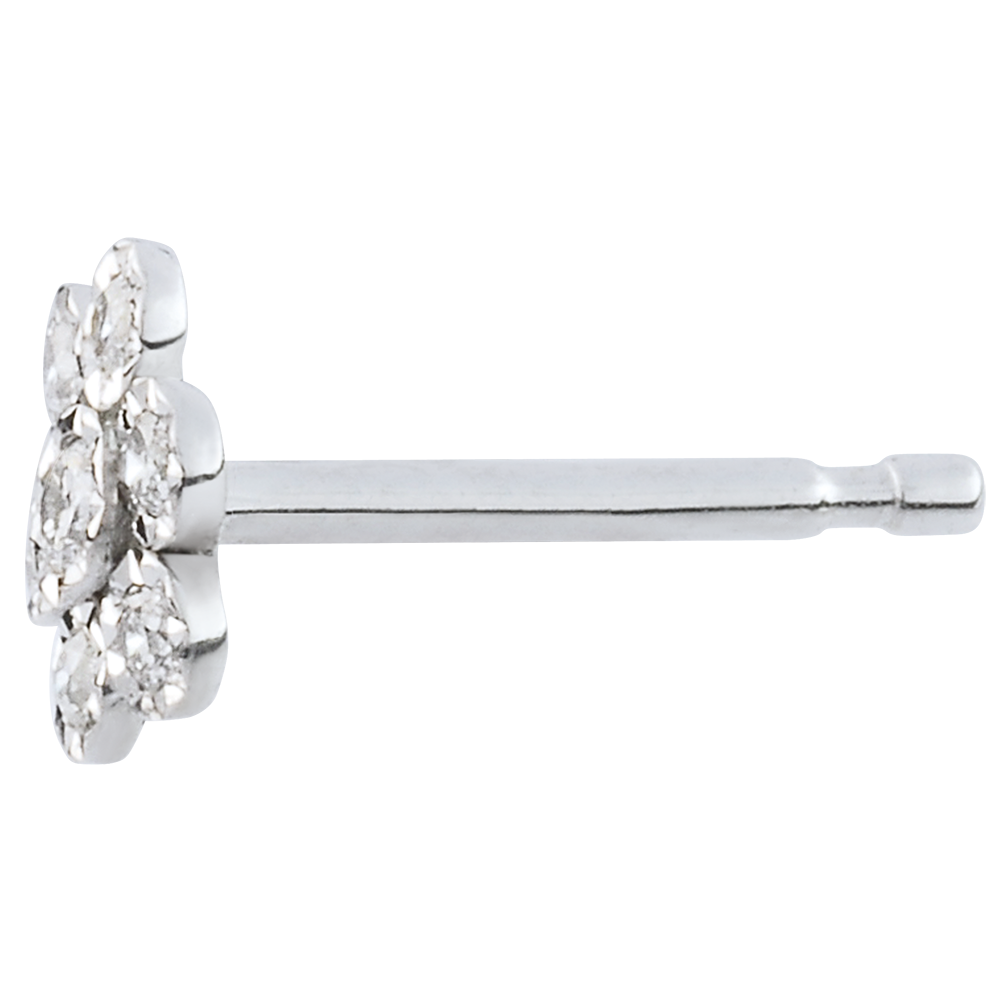 14 diamanti: 0.1 carati - Oro bianco (9 carati= 375/1000): 0.5 g.