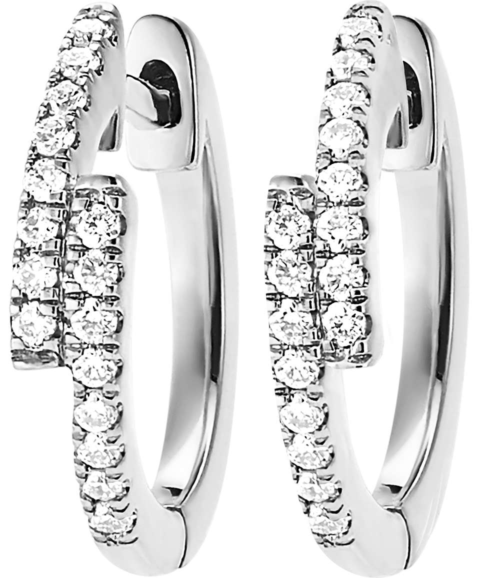 Un delicato paio di orecchini creoli asimmetrici semi pavé per un tocco brillante e un po' rock.
