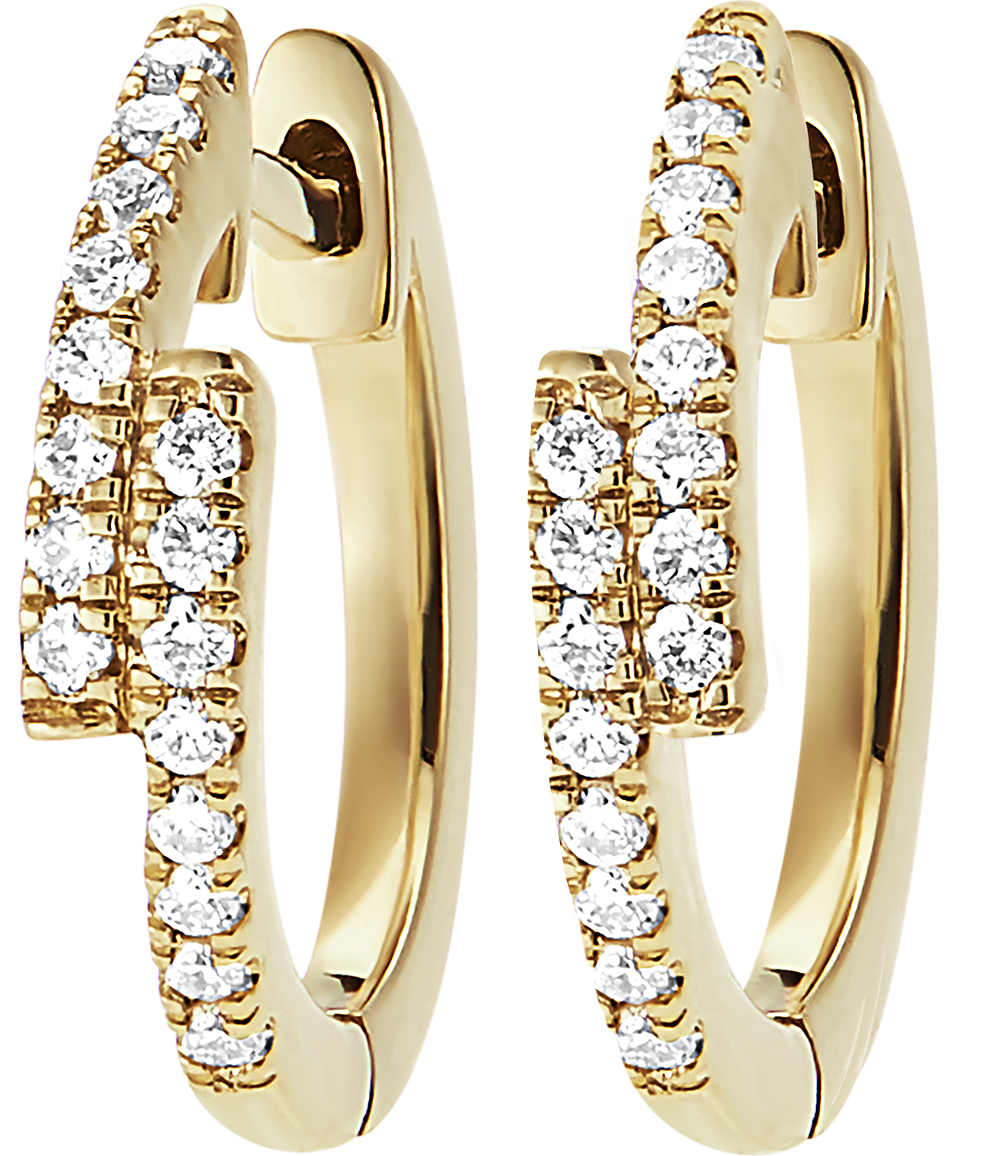 Un delicato paio di orecchini creoli asimmetrici semi pavé per un tocco brillante e un po' rock.