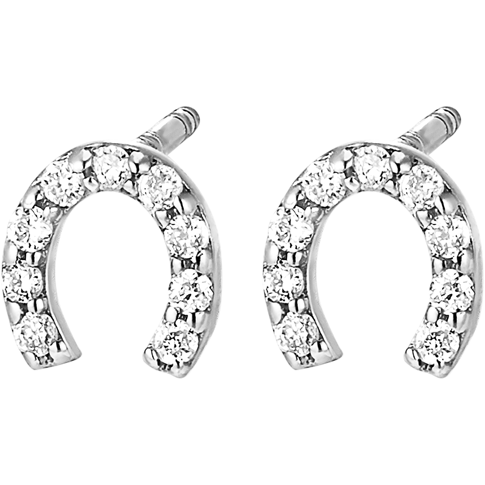 Un paio di orecchini a lobo a forma di ferro di cavallo portafortuna, impreziositi da 18 diamanti.