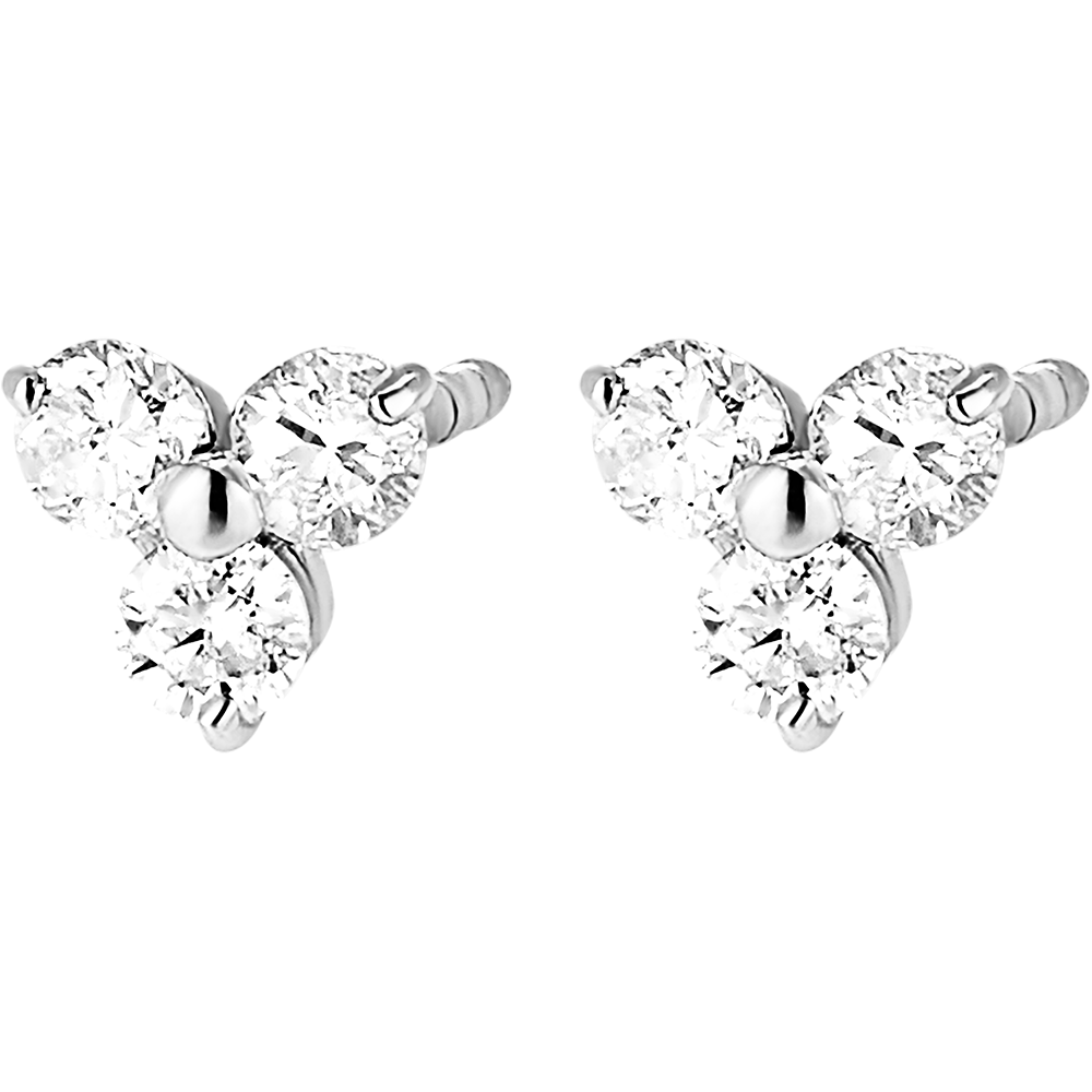 Un paio di orecchini a lobo in oro bianco impreziositi da 3 diamanti. Delicatezza e luminosità per questo modello da indossare in ogni occasione.