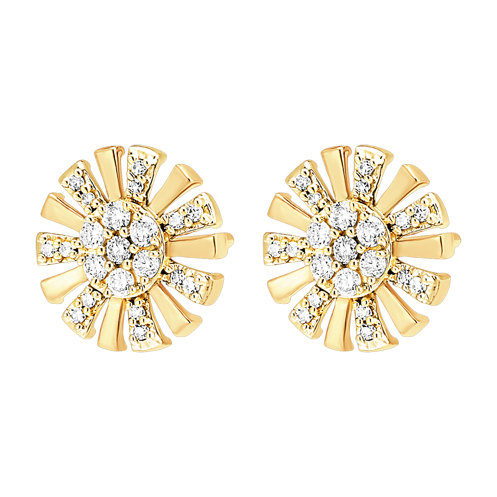 Soli splendenti con contorni scintillanti, per un paio di orecchini in oro giallo eleganti, raffinati, semplicemente radiosi.