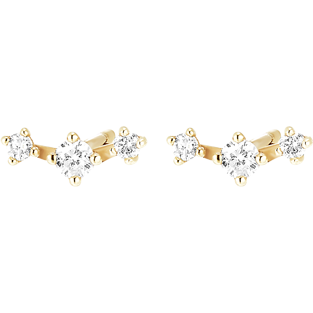 Un paio di orecchini a lobo in oro giallo impreziositi da 3 diamanti. Delicatezza ed eleganza per questo modello da indossare in ogni occasione.