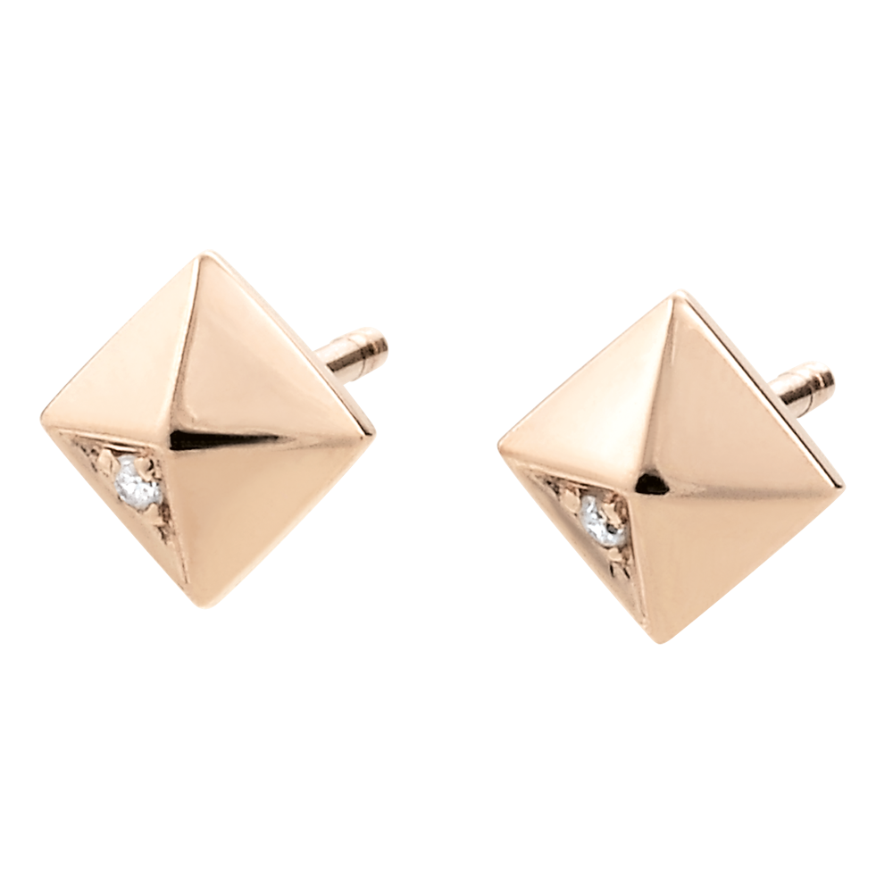 Ispirate dalla forma del diamante grezzo, queste piramidi preziose di cui un lato è decorato con un diamante, sono eleganti e moderne.