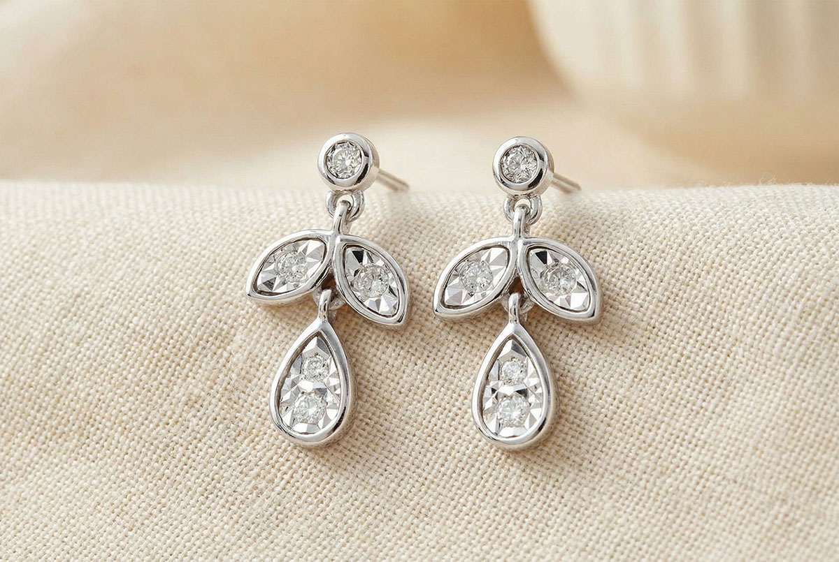GIARDINO INCANTATO N. 4Orecchini Foglie - Oro bianco 9 carati - Diamante ID : 2421