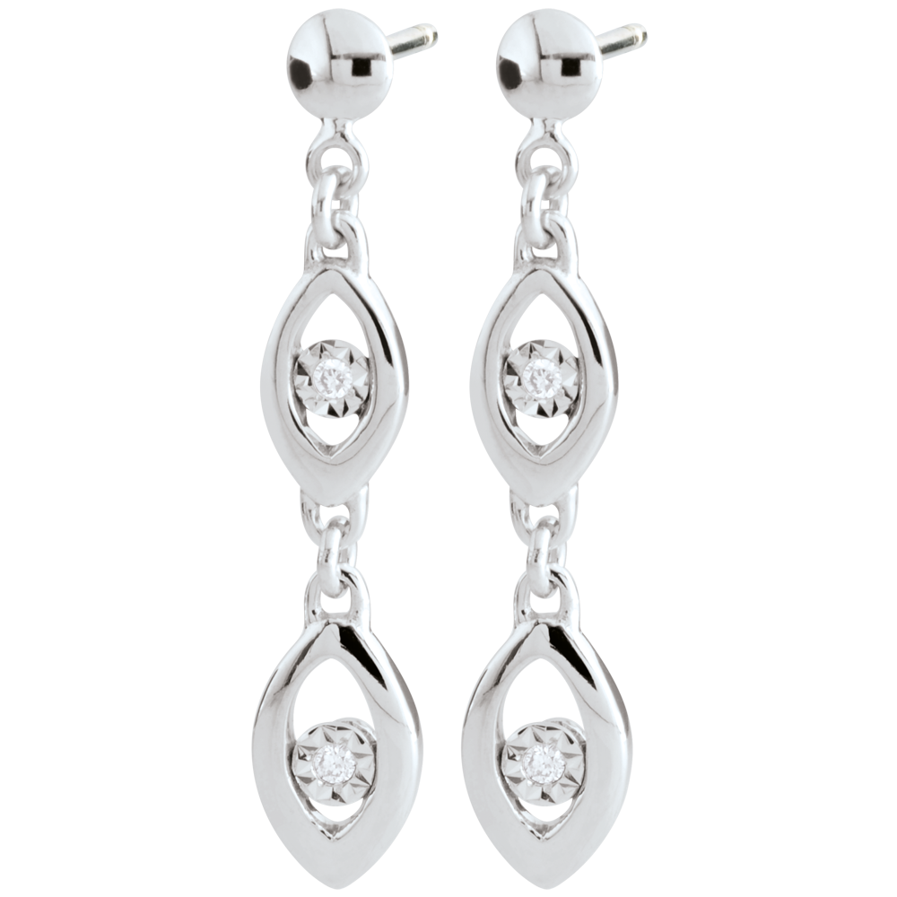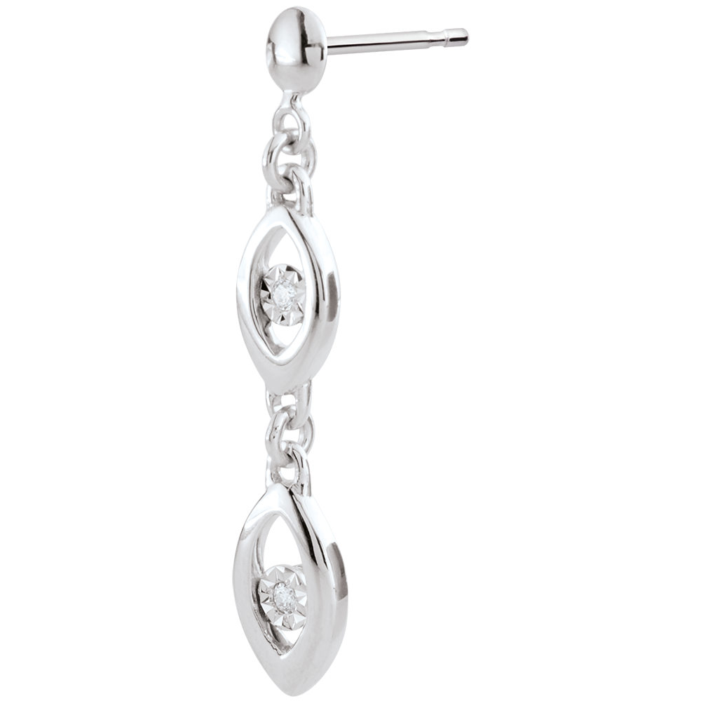 Orecchini Il fascino del Pavone - Oro bianco - 9 carati - 4 Diamanti