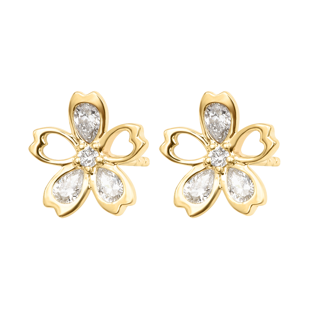 SBOCCIO N. 15Orecchini a lobo Fiore - Oro giallo 9 carati - Diamante di laboratorio ID : 3982