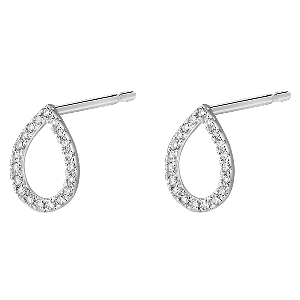 Due gocce impreziosite da un delicato pavé di diamanti incastonato su oro bianco, per un modello puro, vicino alle forme naturali e alle emozioni.