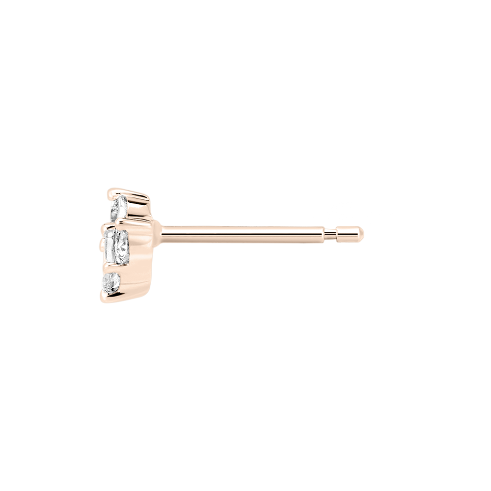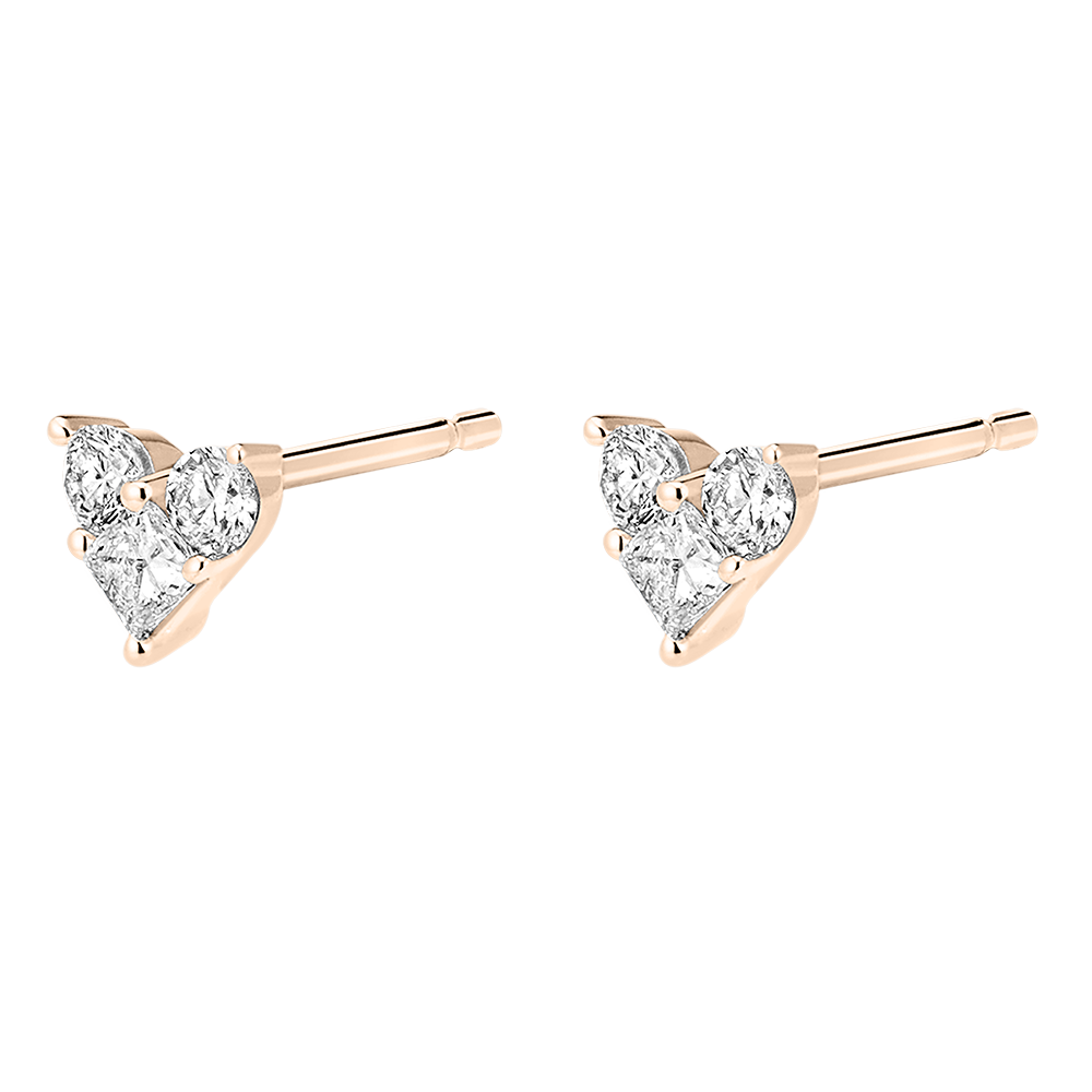Due cuori con pavé di 3 diamants delicatamente incastonati in un orecchino a lobo in oro rosa. Edenly reinterpreta poeticamente quest'icona della gioielleria, per una delle più appassionate dichiarazioni d'amore. Oh, lovely!