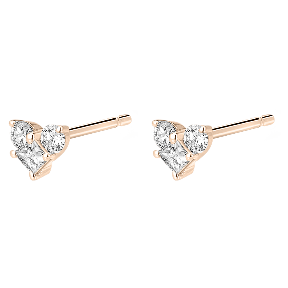 PREZIOSO SEGRETO N. 16Orecchini a lobo Cuore - Oro rosa 9 carati - Cluster di diamanti naturali ID : 5370