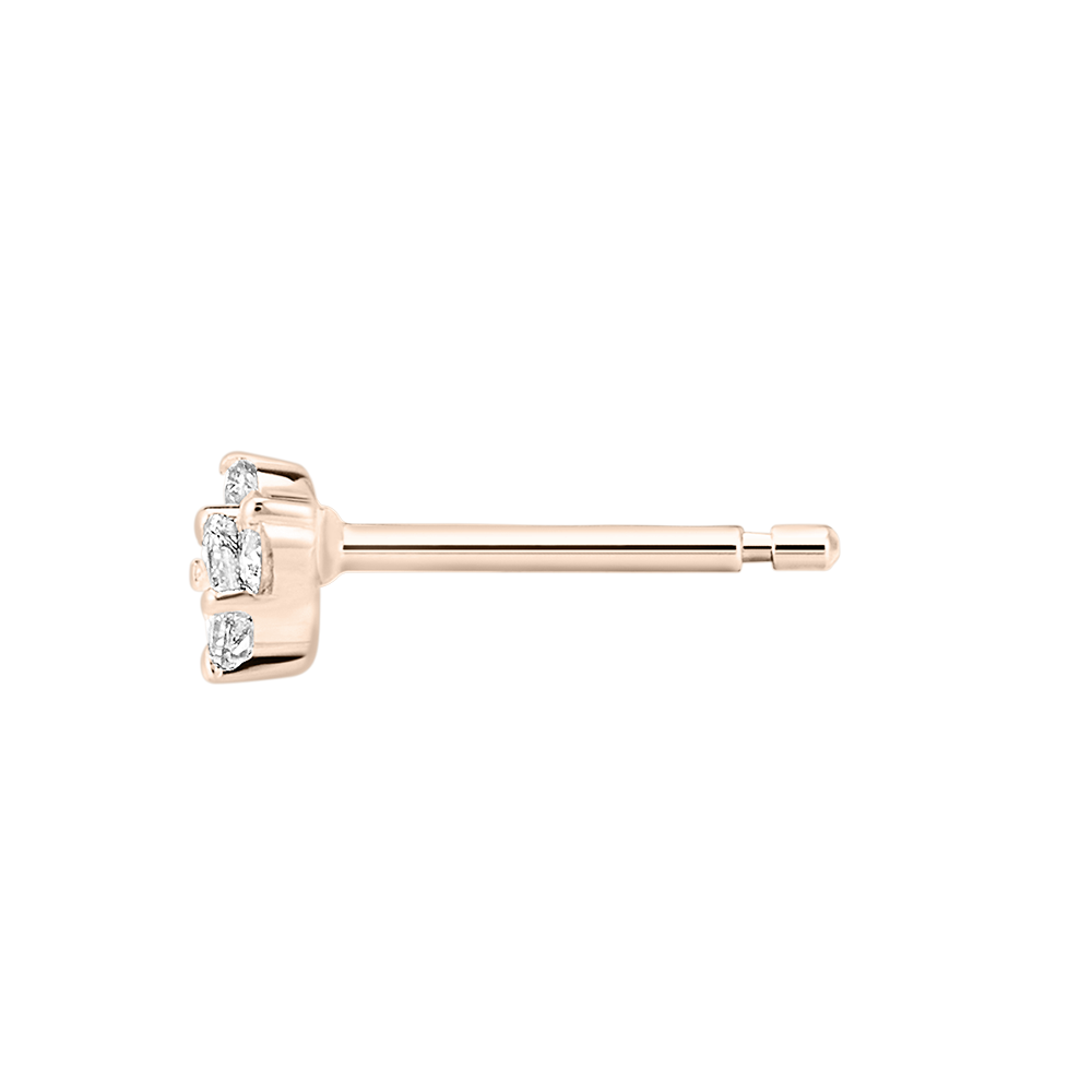 Due piccoli cuori con pavé di 3 diamants delicatamente incastonati in un orecchino a lobo in oro rosa. Edenly reinterpreta poeticamente quest'icona della gioielleria, per una delle più appassionate dichiarazioni d'amore. Oh, mini lovely!