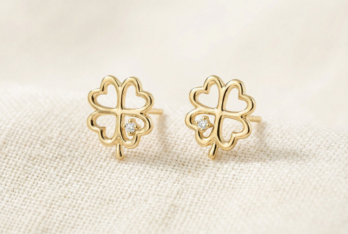 Ogni orecchino, a forma di quadrifoglio traforato, è impreziosito da un diamante splendente.Un portafortuna luminoso da indossare ogni giorno, sempre accanto a te.