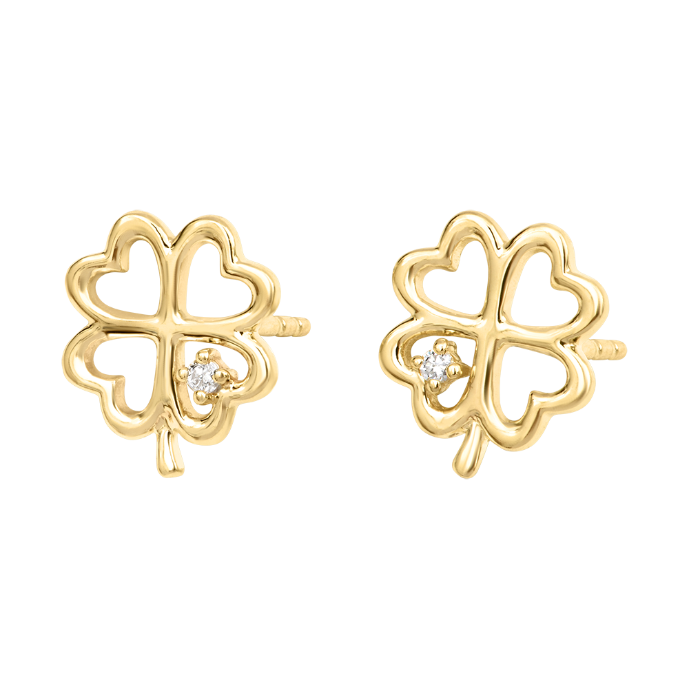 PREZIOSO SEGRETO N. 21Orecchini a lobo Trifoglio - Oro giallo 9 carati - Diamante di laboratorio ID : 3983