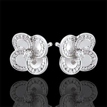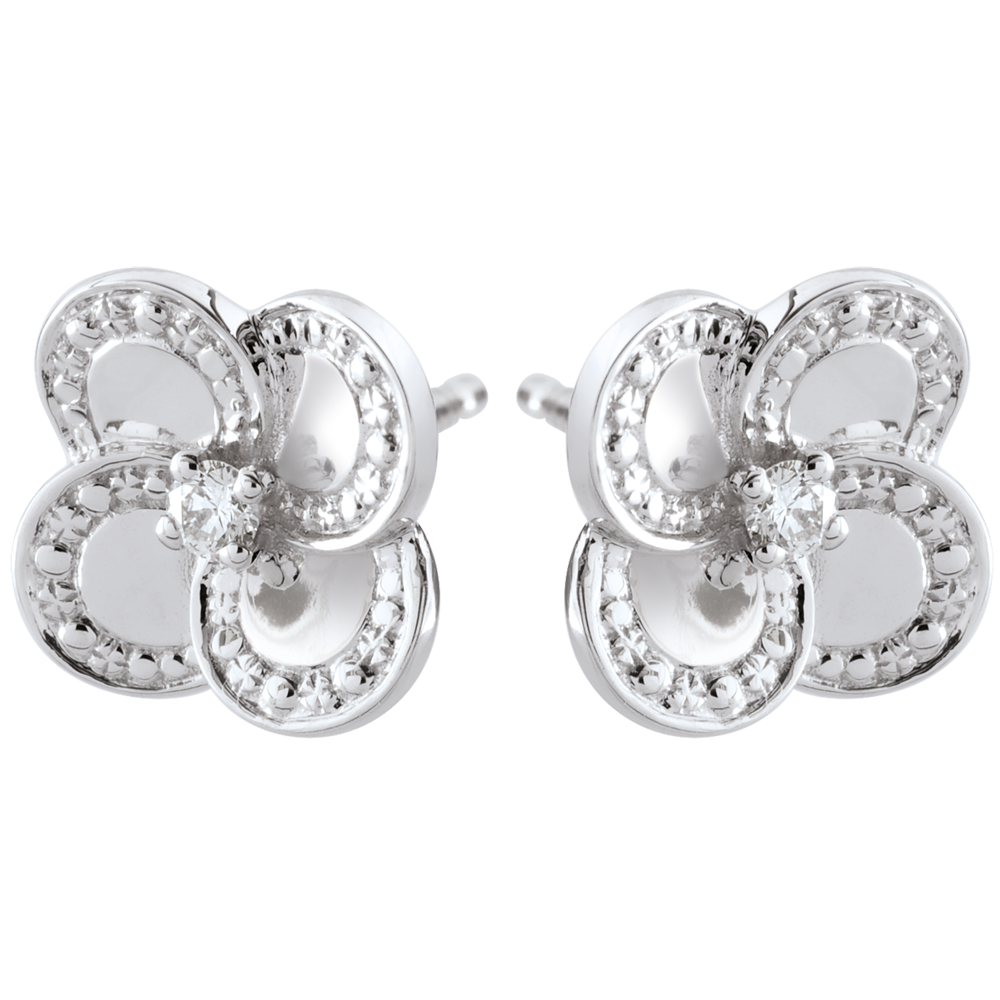 Due quadrifogli di forma arrotondata in Oro bianco e diamanti, simboli di femminilità ed eleganza, per illuminare il viso.