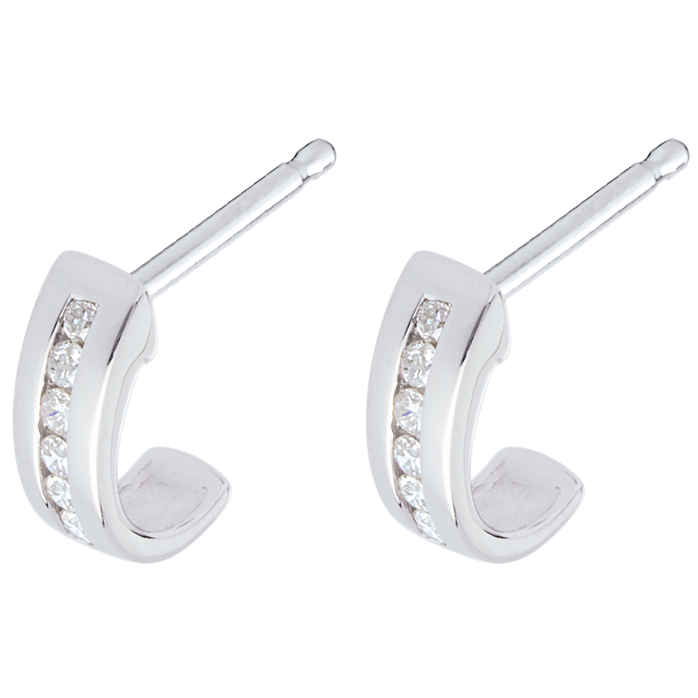 Orecchini Mezza Luna - Oro bianco pavé - 18 carati - 12 Diamanti - 0.11 carati